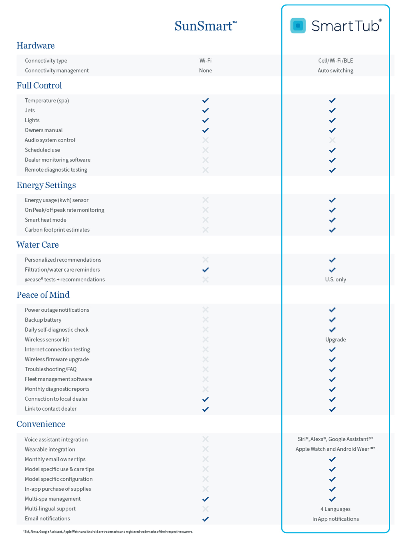 SmartTub® requires the purchase of a hardware upgrade and is compatible with 2016 or newer Sundance® Spas hot tub models. The SmartTub® mobile application will not work without the hardware.